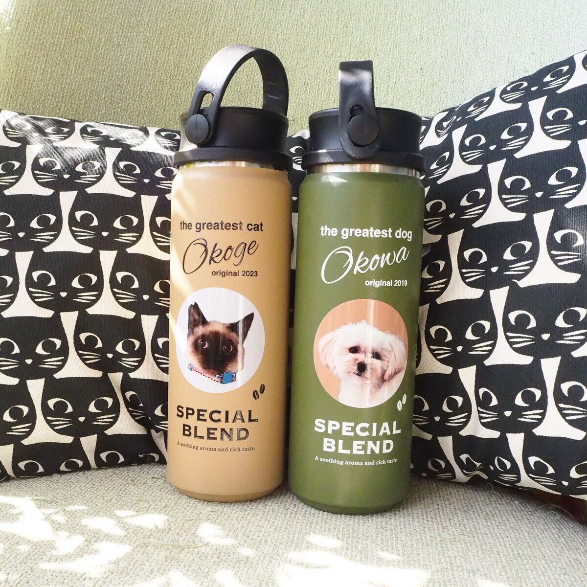 世界にひとつ うちの子 サーモボトル 水筒 アウトドア カフェ 通勤 男前 18-8ステンレス 魔法瓶 500ml