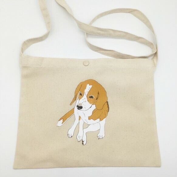 ビーグル 犬 サコッシュ 斜めがけバッグ 布バッグ ブラック ベージュ ショルダーバッグ ポシェット 通院