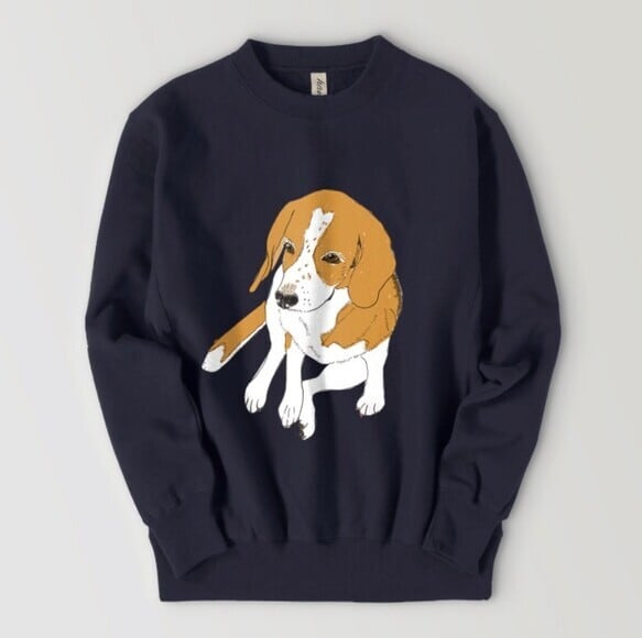 おすわりしてリラックスしたビーグル犬のスウェットです。