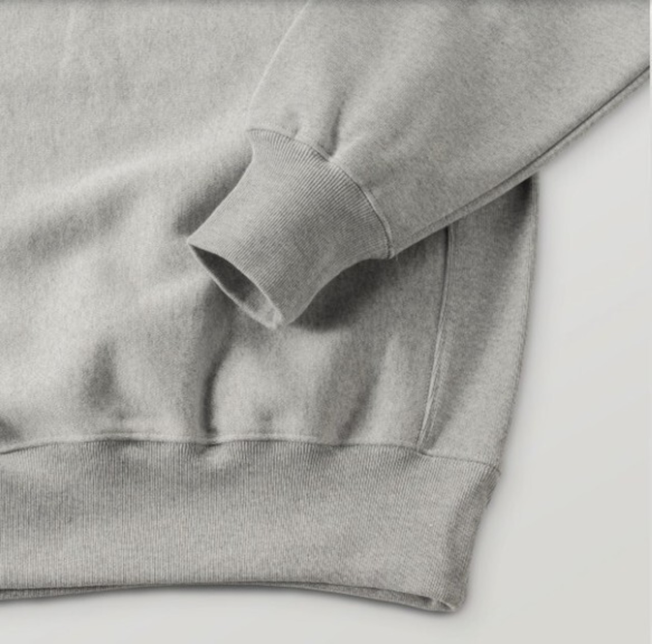 オープンエンド糸特有のザラつき感があり、しっかした強度のある厚手の裏起毛になっています。