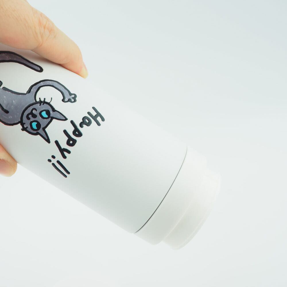 happy cat ハッピーキャット 水筒 ステンレス 真空 サーモボトル 魔法瓶 ロシアンブルー グレー猫 イラスト